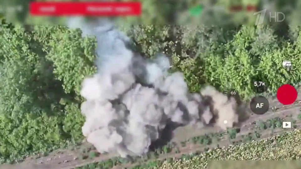 Потери у ВСУ и на передовой. На Запорожском направлении уничтожены опорные пункты и блиндажи. Это результат работы нашей артиллерии. А на севере ДНР сорвана ротация вражеских подразделений. Точный удар дрона по украинской бронемашине с десантом, технику вывели из строя. Потери у ВСУ и в Сумской области, наши бойцы разгромили укрепление боевиков. А это горит украинский миномет, тоже после попадания нашего беспилотника. Он на оптоволокне. Системы РЭБ против таких бессильны. Один из самых горячих участков — Красноармейский. Основное оружие противника — дроны. Серьезная помеха для продвижения наших штурмовых отрядов. Точки запуска аппаратов поразили из тяжелой огнеметной системы «Солнцепек».